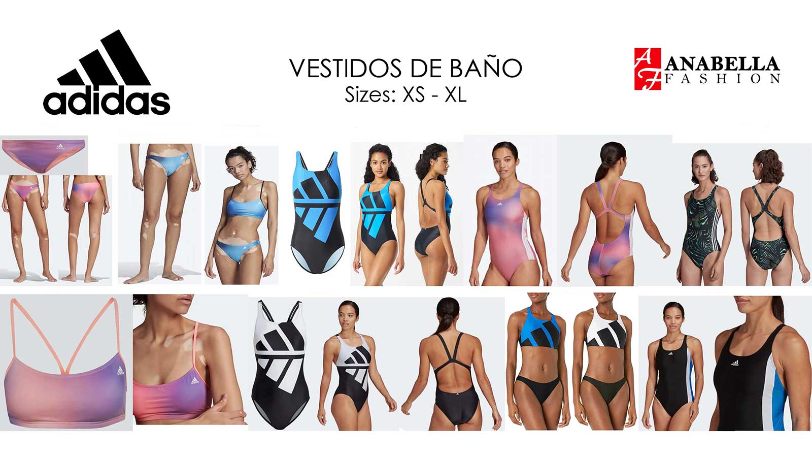 En Anabella Fashion Inc. somos tu proveedor mayorista ropa de marca original para mujer, ofreciendo trajes de baño Adidas al por mayor, exclusivamente para negocios y distribuidores. Cada producto es 100% nuevo, con etiquetas originales, listo para vender en tu tienda física, o via internet.